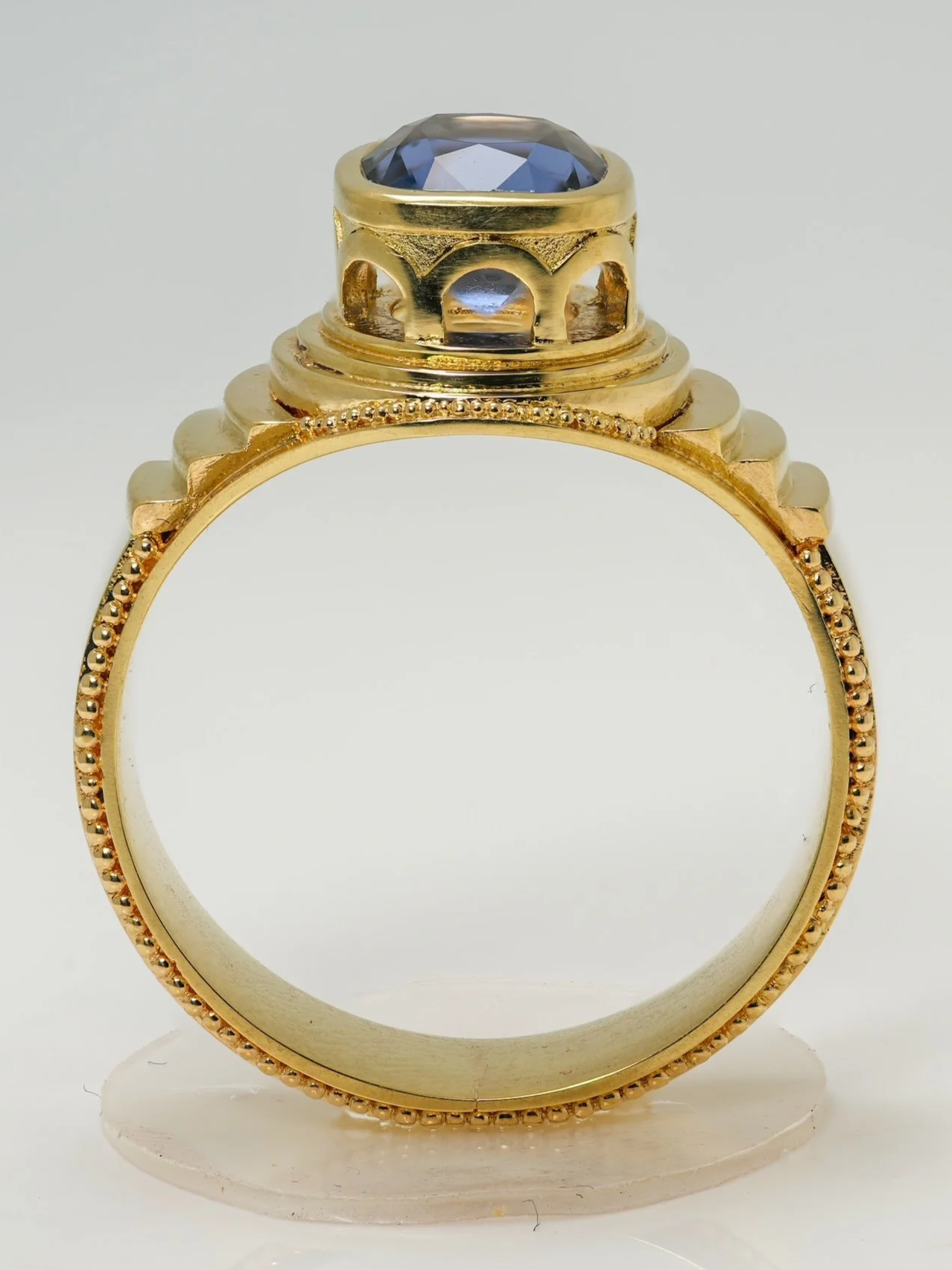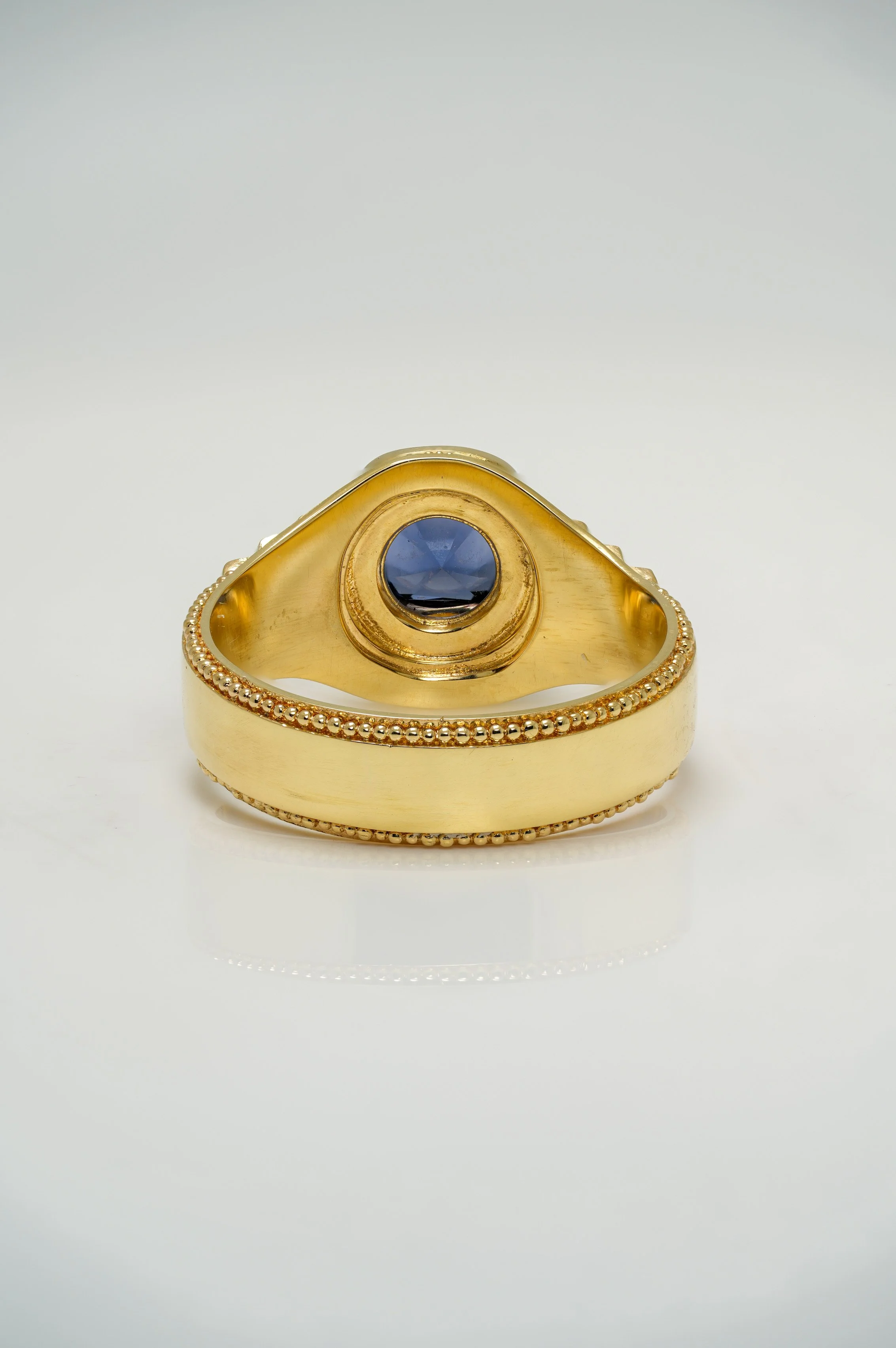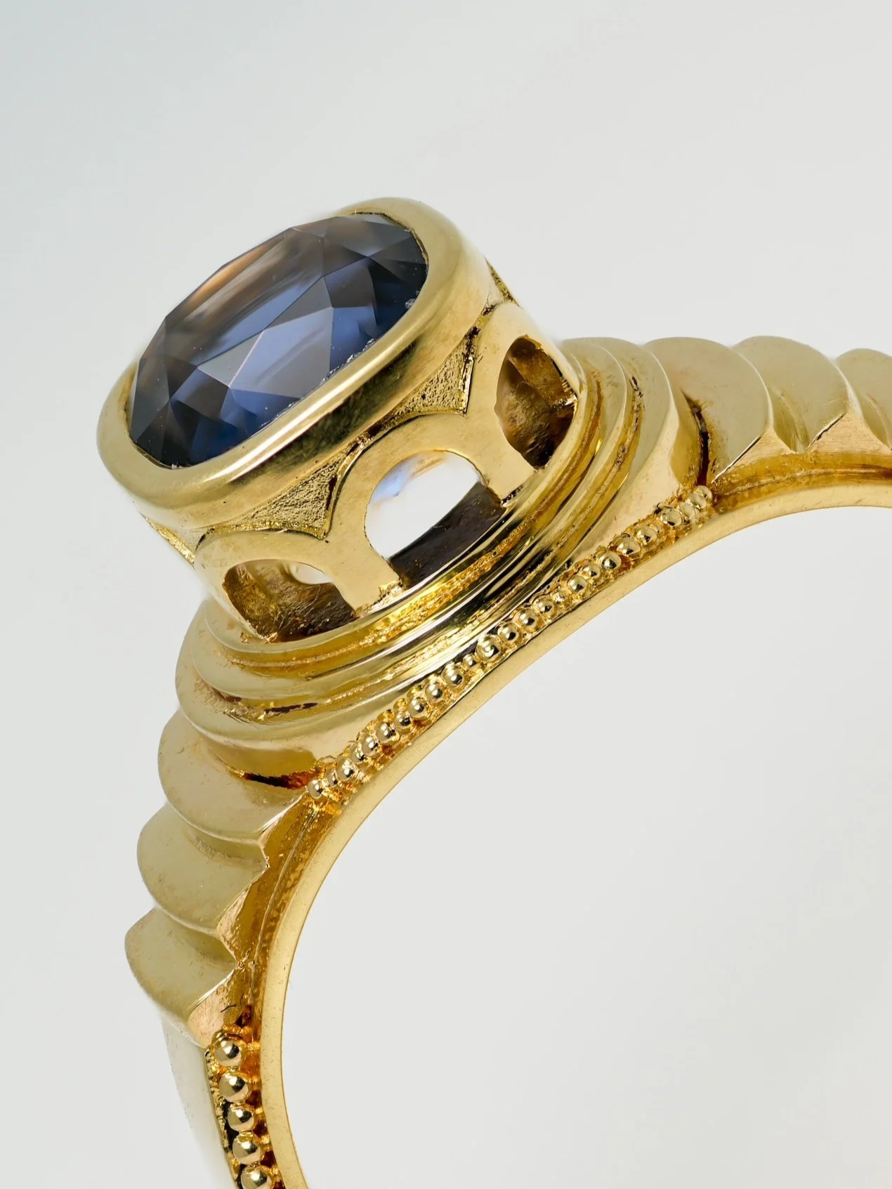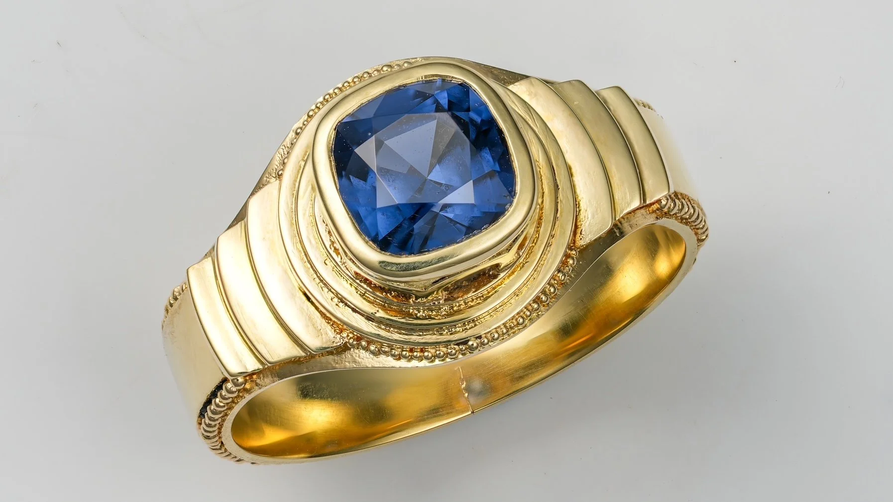A deep blue spinel set in solid 18k gold.